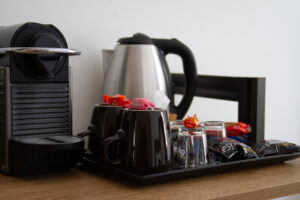 - macchina per il caffé con cialde omaggio, bollitore con tisane e té